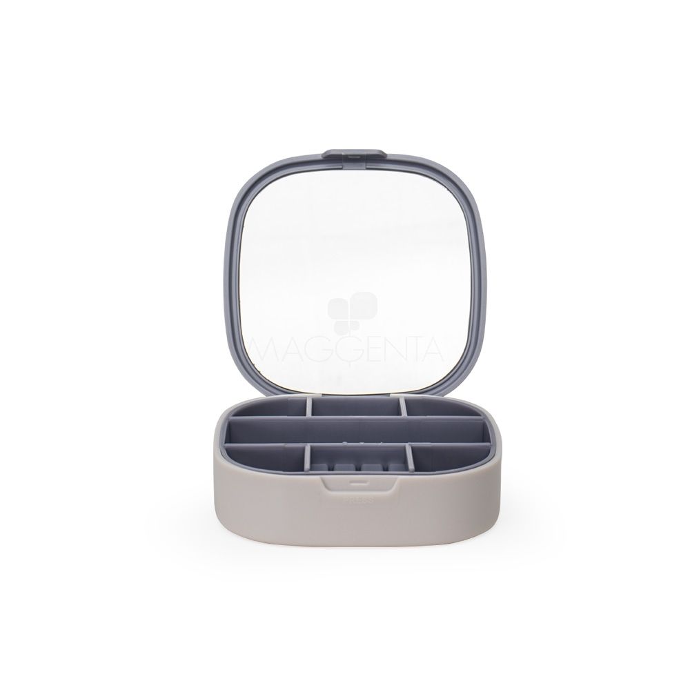Brindes Femininos Nosso Porta-jóias organiza seus acessórios de forma prática e compacta. Produzido em plástico, é a escolha ideal para manter anéis, brincos, batom e pulseiras sempre acessíveis. Com 7 compartimentos estratégicos para guardar tudo, feitos em material macio e emborrachado, removíveis para facilitar a limpeza, ele também conta com um espelho na tampa, facilitando na hora de montar looks com as jóias. Perfeito para quem valoriza organização, autocuidado e praticidade no dia a dia. 10,0 cm x 9,9 cm x 3,0 cm 116 g