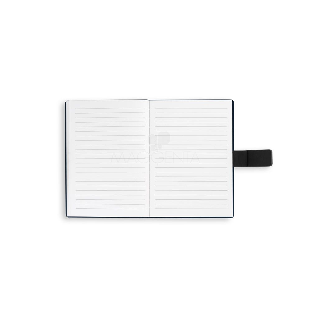 Caderno Caderno A5 com um design moderno desenvolvido para ser versátil no seu dia de trabalho. Composto por uma capa dura em 80% materiais reciclados (PU reciclado e poliéster reciclado), este caderno está estruturado em duas partes: a primeira tem 128 páginas pautadas e a segunda 128 páginas lisas, ambas feitas de um material proveniente de gestão florestal sustentável. Contém uma fita para fecho magnético do caderno. 15,0 cm x 21,0 cm 460 g