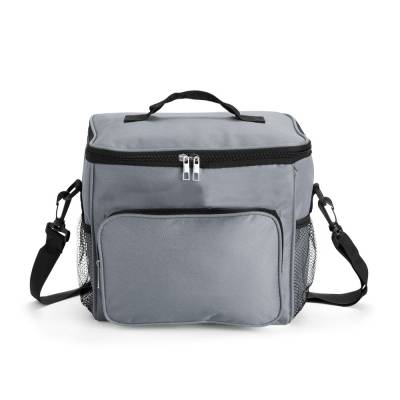 Bolsas Térmicas Bolsa térmica em Oxford resistente à água e com capacidade de até 11 litros. Seu revestimento interno em alumínio permite a conservação de temperatura de alimentos e bebidas por mais tempo. Possui também um bolso frontal e mais um par de bolsos laterais em tela de nylon, além de uma alça fixa na tampa e outra transversal. 25,0 cm x 22,0 cm x 16,0 cm 231 g