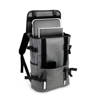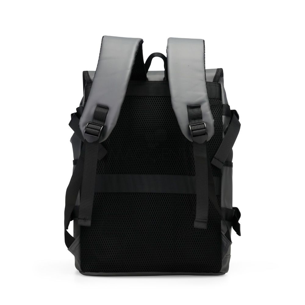 Mochilas Mochila confeccionada em couro sintético com capacidade máxima de 18 litros. Possui abertura com zíper, tiras frontais em velcro e engate rápido. Apresenta divisória interna para notebook de até 15,6 polegadas, além de dois bolsos laterais e dois frontais, sendo um com fechamento em zíper próximo à abertura. Conta ainda com alças ajustáveis, costas acolchoadas em espuma respirável e engate traseiro para malas. 30,0 cm x 43,5 cm x 15,0 cm 739 g