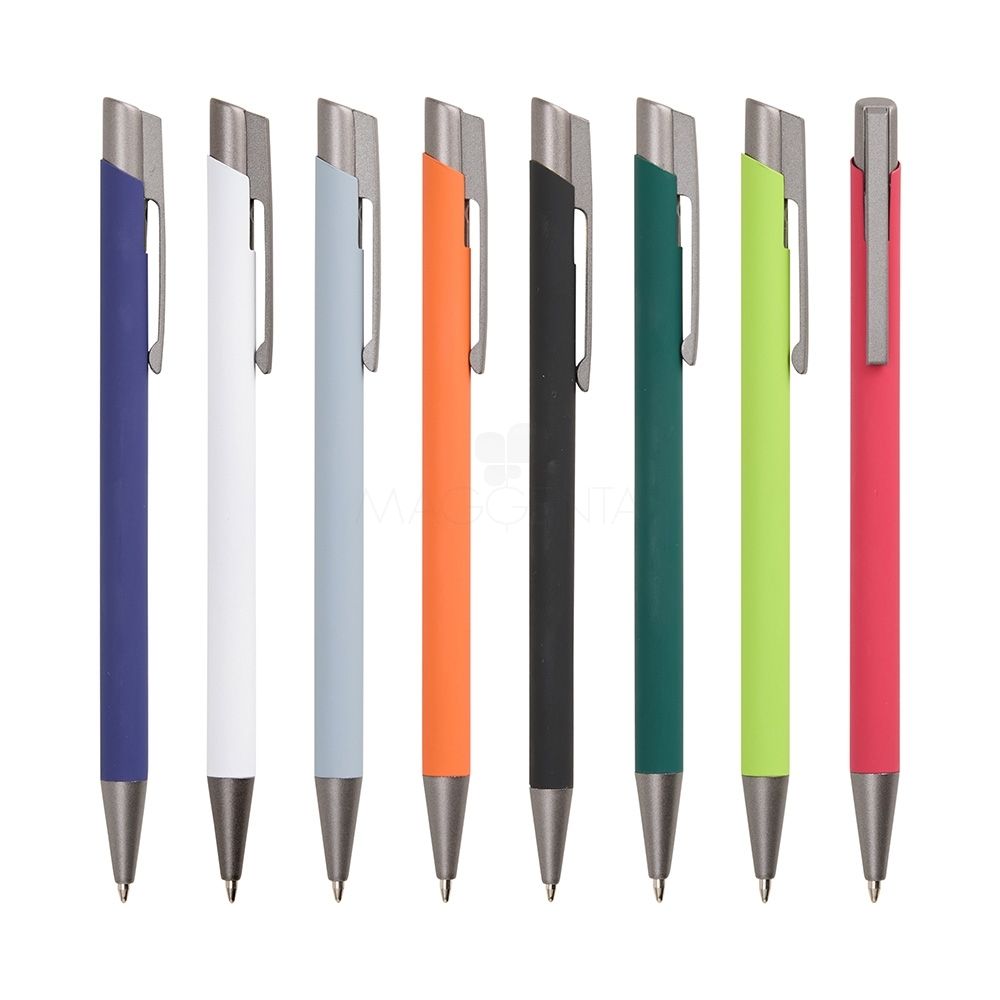 Caneta esferográfica de carga azul de 1.0mm, acionamento por clique e construção leve totalmente em metal, o que possibilita uma pegada suave para uma escrita mais precisa.