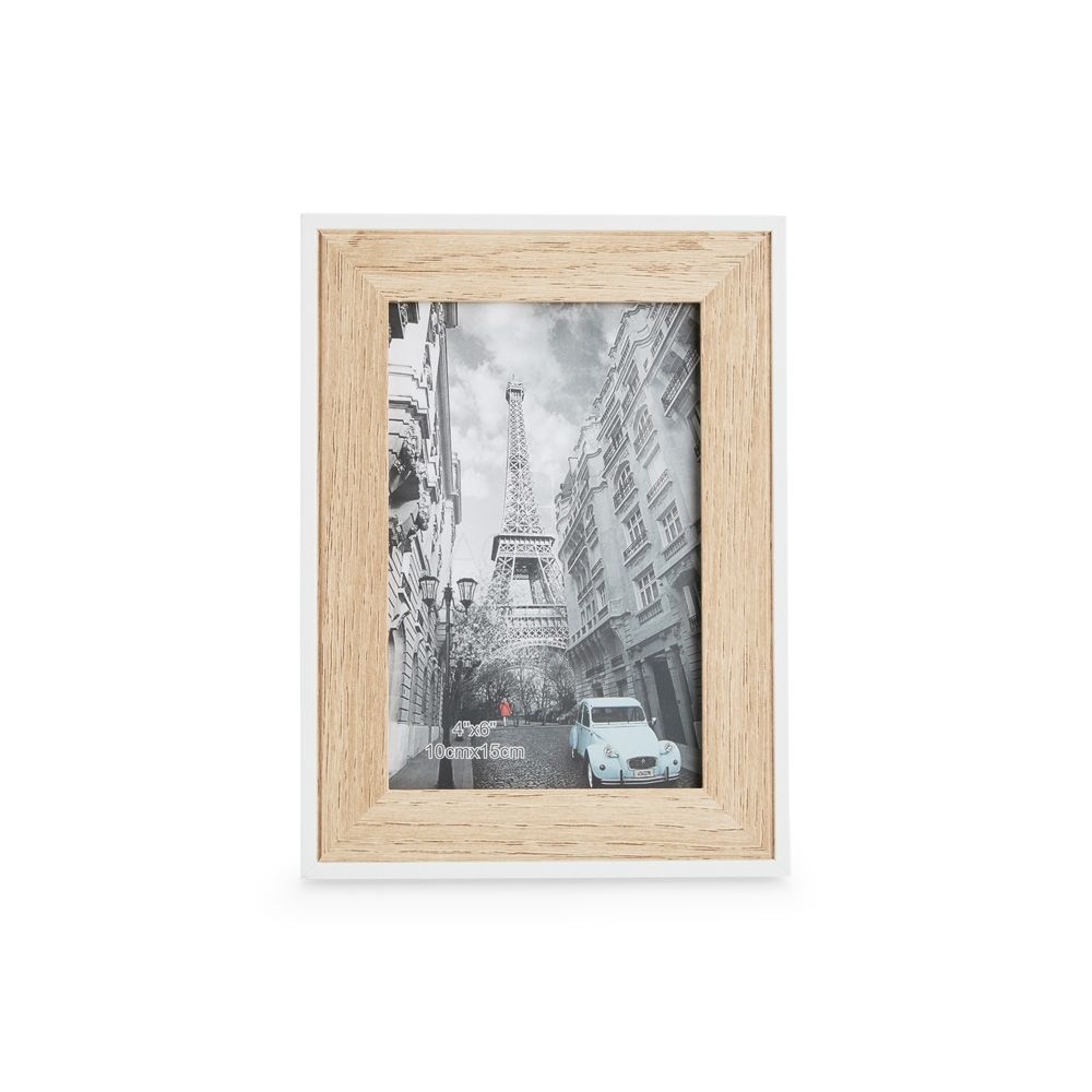 Porta-retratos para fotos 10 x 15, ideal para uso na vertical ou na horizontal. Possui moldura e fundo em MDF, visor em folha de acetato e travas metálicas.