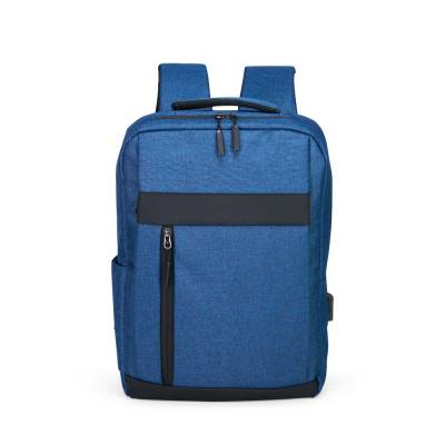 Mochila em nylon Oxford impermeável com detalhes em couro sintético, capacidade para até 14 litros, fechamento em zíper com puxadores em plástico e nylon. Possui compartimento interno com bolsos de tamanhos variados e divisória para notebooks de até 15,6 polegadas. Apresenta dois compartimentos frontais com abertura lateral, além de entrada para cabo USB e bolso lateral aberto. Dispõe também de alça de mão em poliéster reforçado e duas alças para as costas com revestimento em espuma respirável.