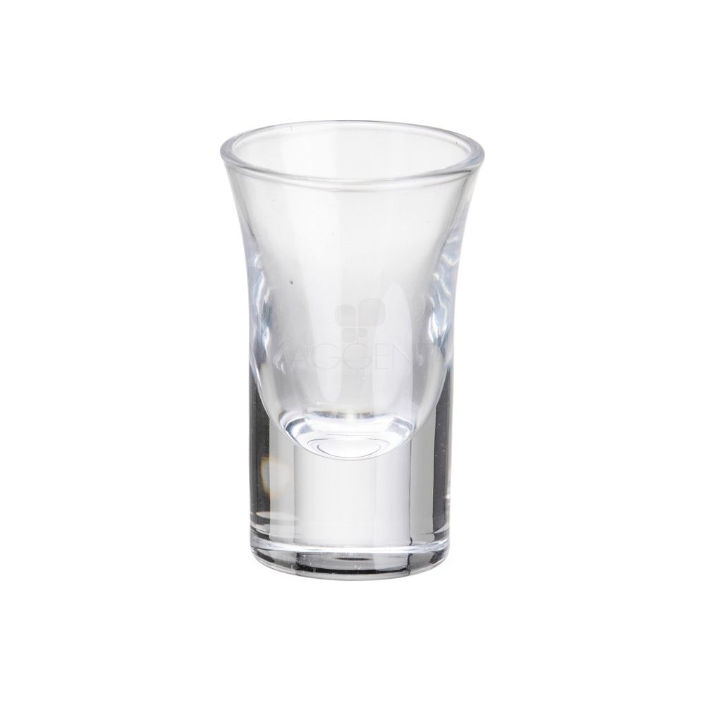 Kit com seis copos de vidro com capacidade máxima de 30ml cada.